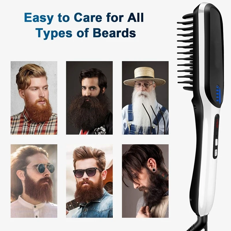 LED Display Lonic Men Beard Straightener Mustache Combs Straightening Hair Comb Brushes Adjustable