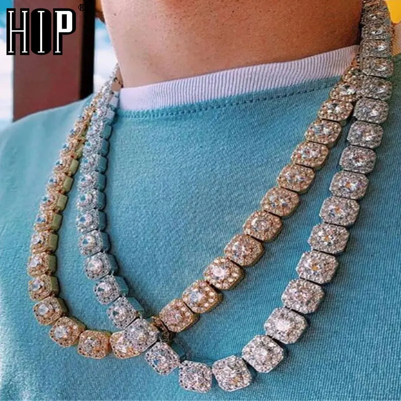 Hip Hop 10MM Bling Iced Out Tennis Chain Square Lattice AAA CZ Stone Gold Silver Cubic Zircon Choke