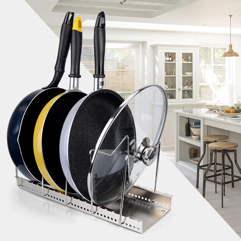 HIGH QUALITY 304 Stainless Steel Adjustable Rack Pot Lid&Pan Shelf Dish Drainer Shelves Multifunctional Organize