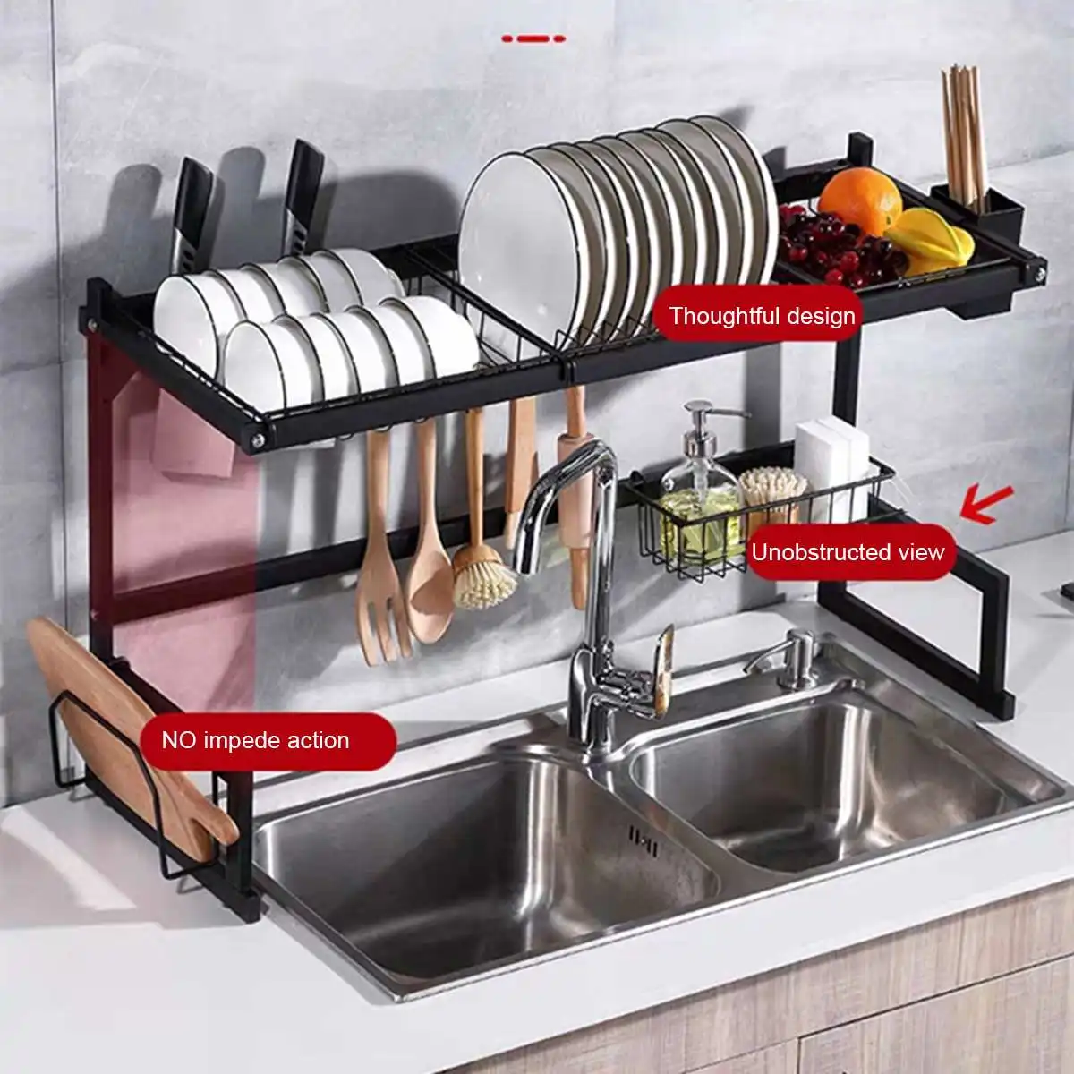 HIGH QUALITY Kitchen Shelf Organizer Dish Drying Rack Over Sink Utensils Holder Bowl Dish Draining Shelf Kitchen
