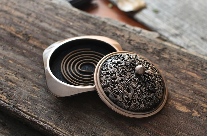 ORIGINAL PINNY Dragon Carved Antique Copper Alloy Coil Incense Holder Burner Aromatherapy Furnace Home Plate