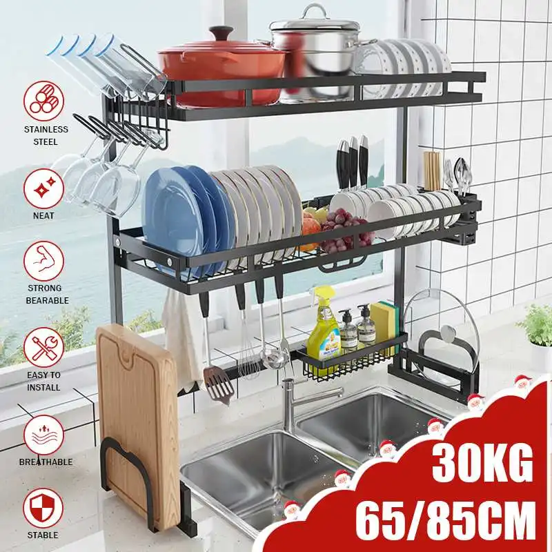 BEST QUALITY 1/2 Layers Multi-use Stainless Steel Dishes Rack Steady Sink Drain Rack Kitchen Organizer Rack Dish