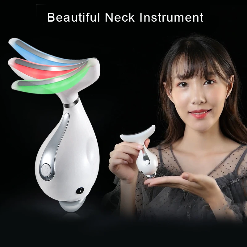 3 Colors LED Photon Beauty Neck Facia Massager Heating Face Lifting Remove Neck Wrinkle USB Magneti